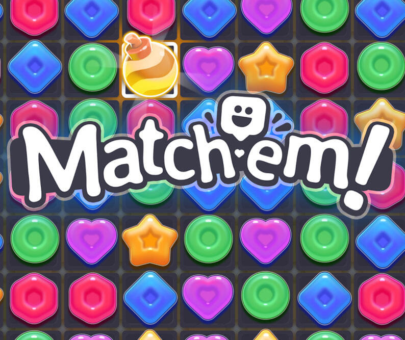 Match'em! is a mobile match-3 game with a pinch of Tamagotchi twist. The meta-game of this game concept is building companionship with the Match3 bot, Chatty. The top section has multiple purposes. Depending on the flow, it serves as a celebration or a mini-game area.